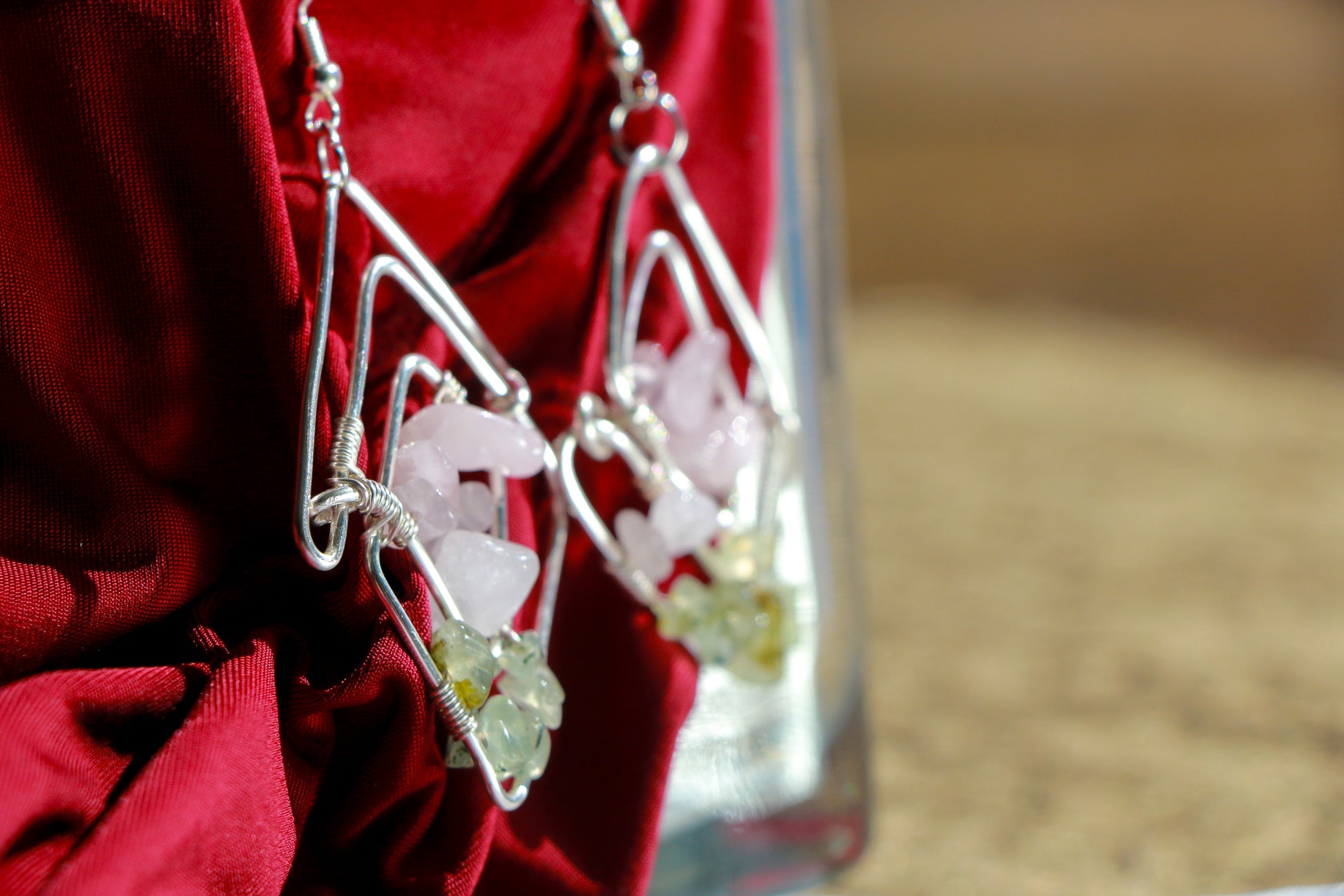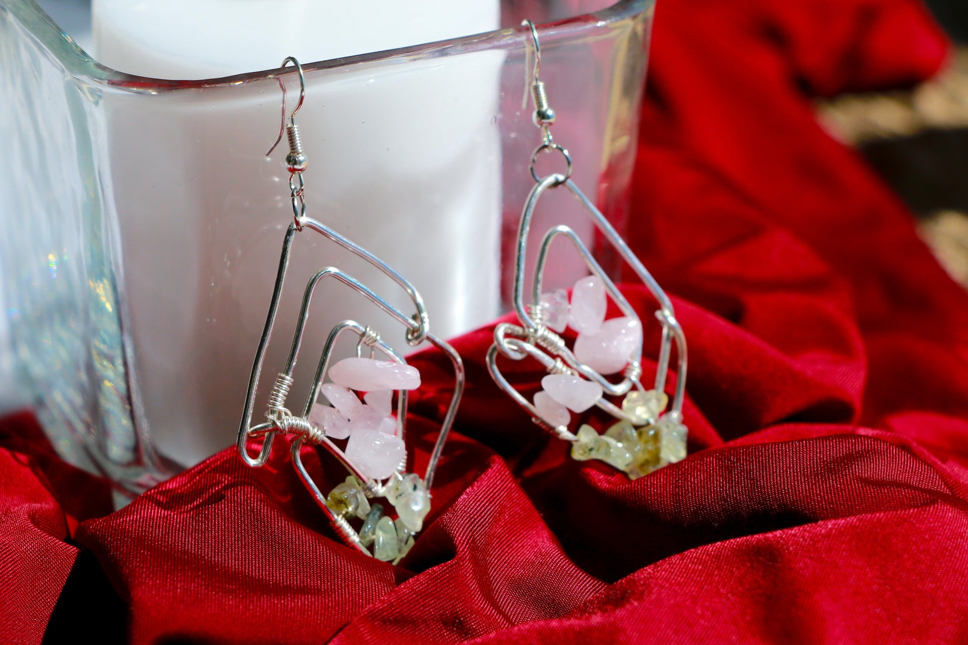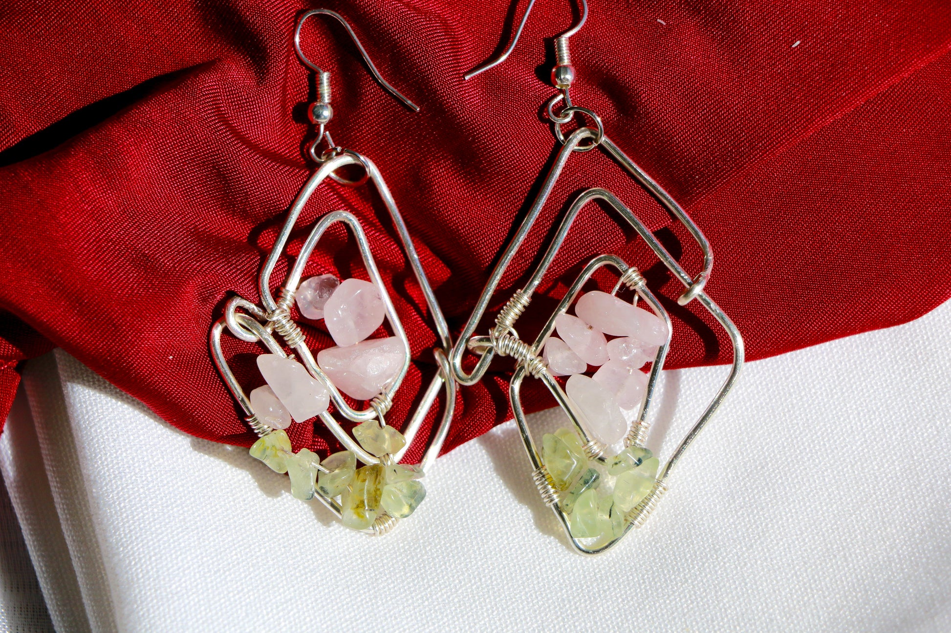 ❤️ Silver, tarnish free wire wrapped with Rose Quartz and Prehnite.